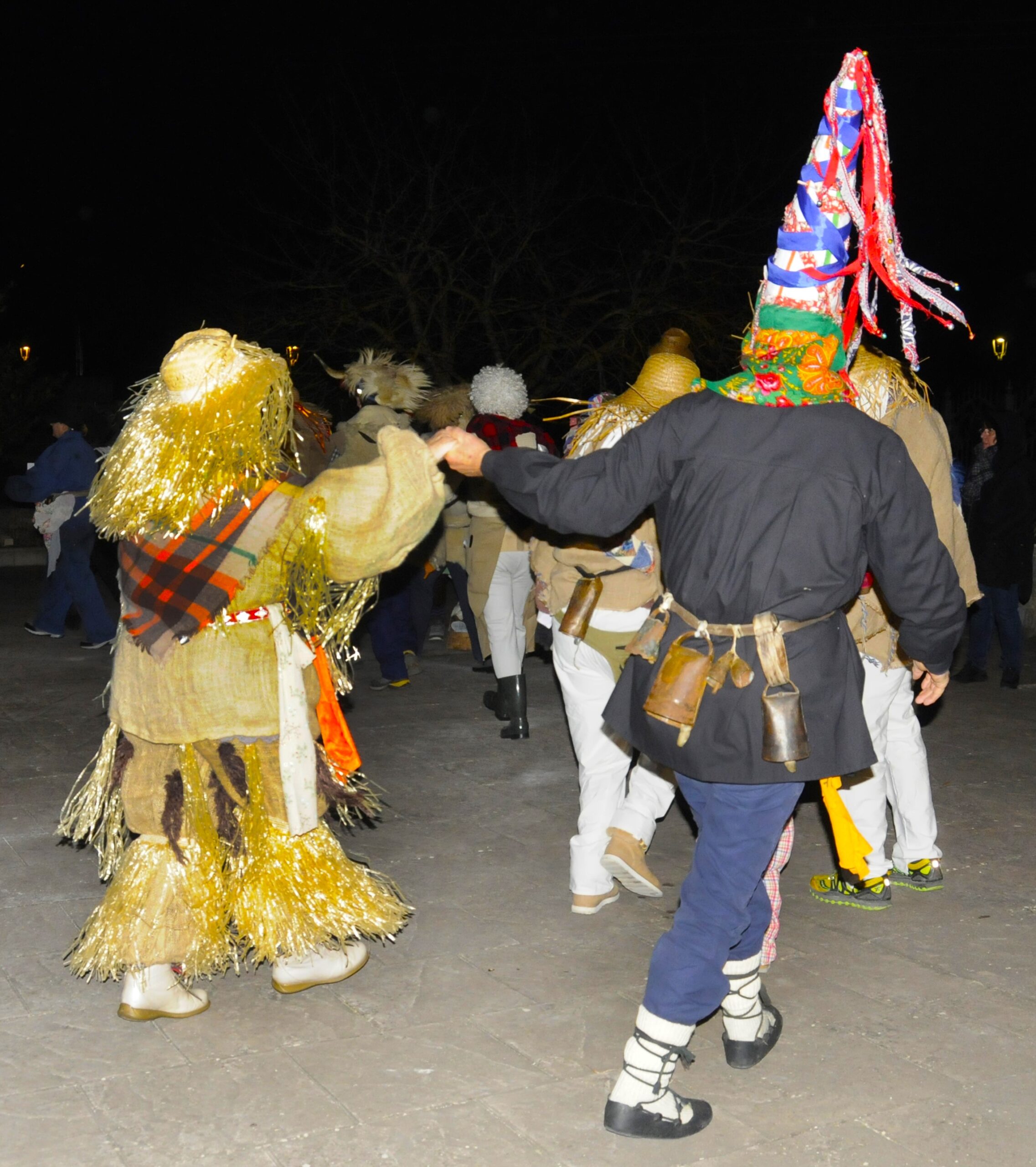 Todos juntos, en comparsa, recorriendo el pueblo van.
