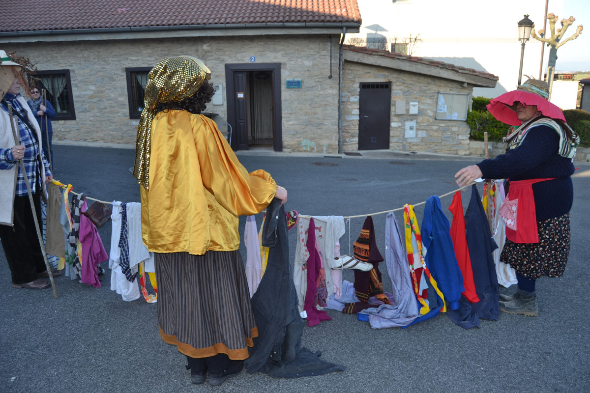 Una semana antes, los participantes en el Carnaval nos reunimos para buscar ropas viejas y complementos para cada personaje; cencerros, carracas-matracas, cuernos, ramas, arado, paja, ceniza, baldes, melenas y fronteras para los bueyes, viejas botas y pellejos de vino, soga con trapos, y demás atuendos que nos pudieran servir.