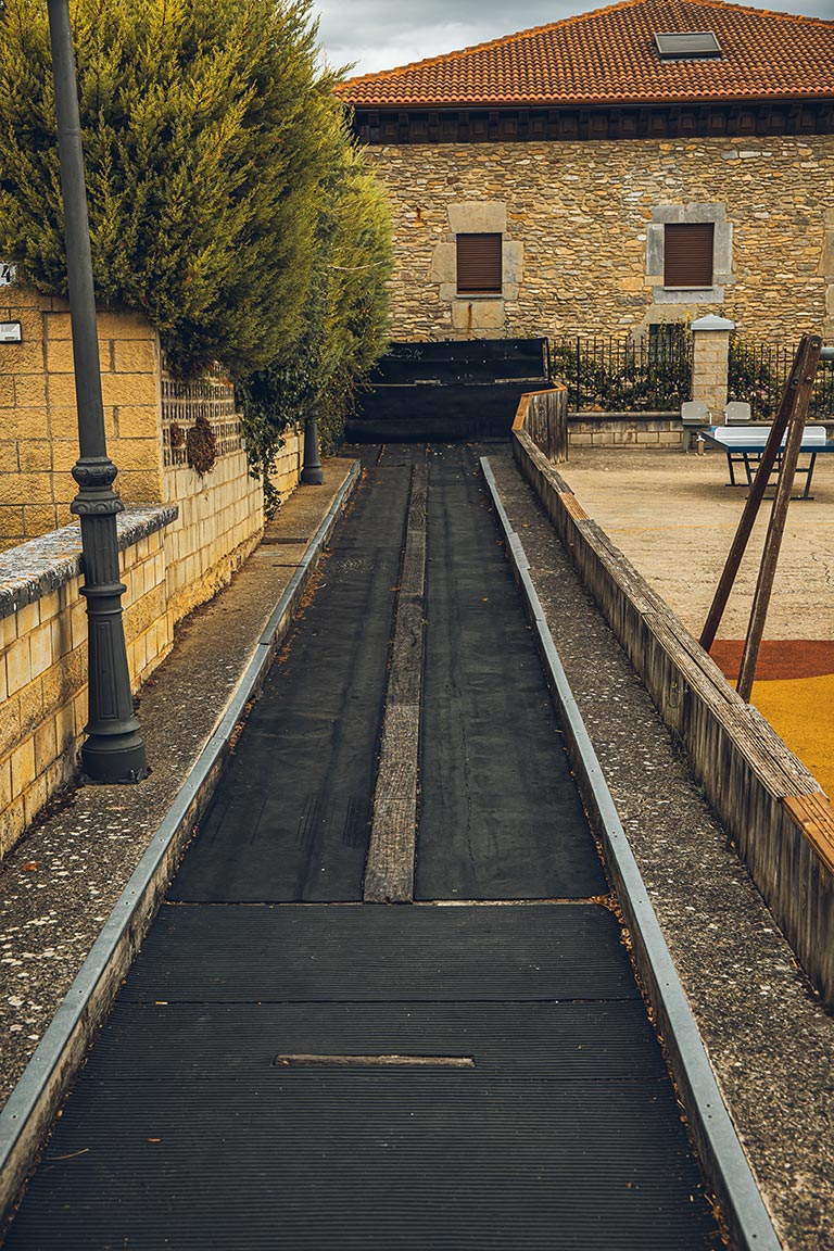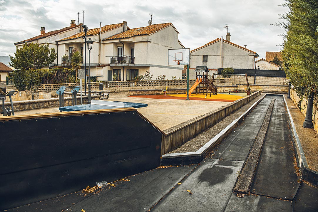Además, la bolera se integra en un entorno de uso mixto: rutas rurales que conectan con el despoblado de Iruña, senderos hacia la ermita de San Pelayo o el barrio de Gárabo, y la pista deportiva contigua. Todo ello configura un espacio donde convivencia, tradición, deporte y paisaje se funden y enriquecen mutuamente.